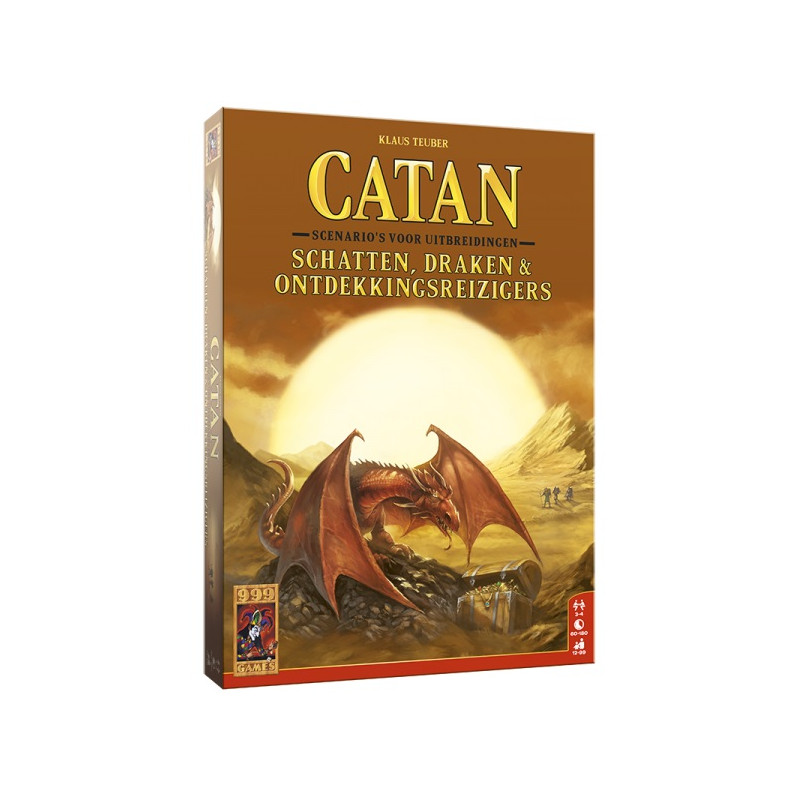 It includes material for Die Wüstendrachen/Wüstenreiter, Der große Kanal, Verwunschenes Land, Die Schatzinseln, and enough material for Groß-Catan, so that you no longer need a second base game for it. Plus, there is a new scenario, Aufbruch ins Ungewisse.