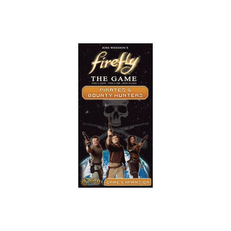 Firefly: The Game - Pirates & Bounty Hunters, the first full game expansion for Firefly: The Game, introduces a heavy dose of player-versus-player interaction to the 'Verse. Raid rivals’ ships with piracy jobs. Hunt down wanted fugitives and collect bounties. Ready your crew for showdowns with brand new supply cards! Explore the ’Verse with two new ships. Aggressive new leaders specialize in anti-social strategies while Lawmen reward those bringing justice to the ’Verse.