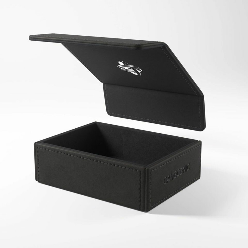Keep your most precious tokens, cards or dice safe in this elegant, top-quality token box! The Token Keep features Gamegenic's signature "Convertible System": the removable lid snaps into place at the bottom, saving valuable gaming table space when you open it. This makes the Token Keep fully usable while playing. Powerful magnets ensure a secure closure. The Token Keep is designed to hold a wide variety of markers, dice, other items and even 40 cards with double sleeve, 50 cards with single sleeve or 80 cards without a sleeve. It is perfect for various board games, TCGs and LCGs. Thanks to Gamegenic's modular design, the Token Keep fits perfectly into the Dungeon 1100+ and Dungeon S 550+.