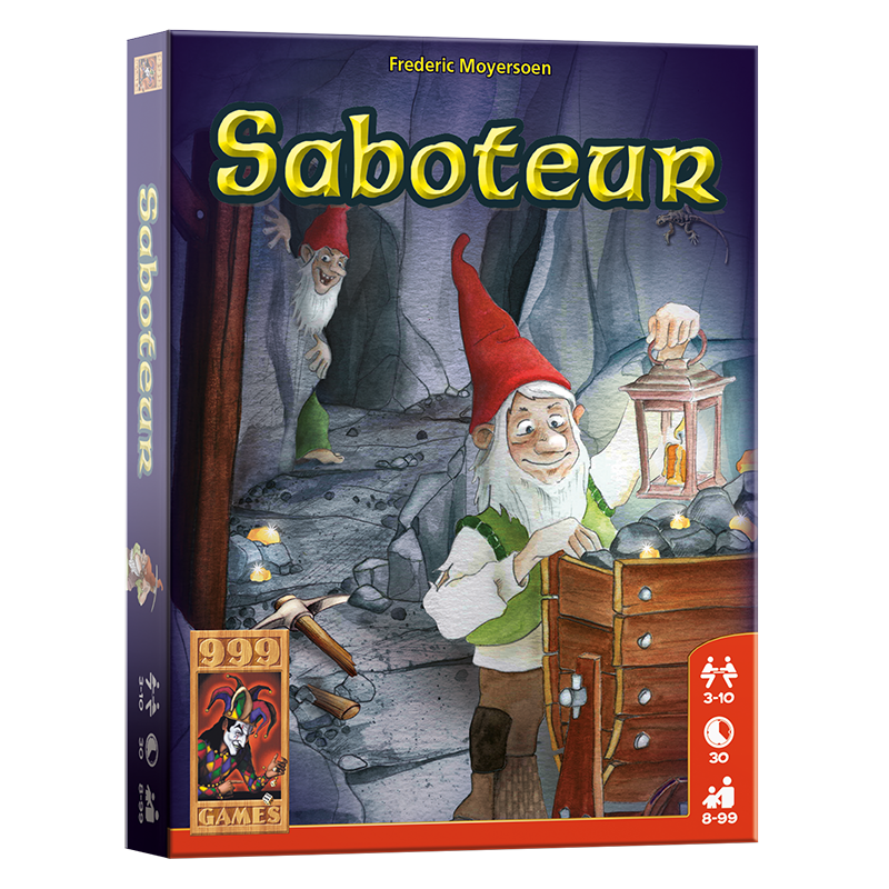Players take on the role of dwarves. As miners, they are in a mine, hunting for gold. Suddenly, a pick axe swings down and shatters the mine lamp. The saboteur has struck. But which of the players are saboteurs? Will you find the gold, or will the fiendish actions of the saboteurs lead them to it first? After three rounds, the player with the most gold is the winner.