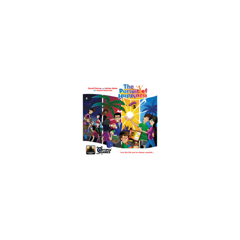 The Pursuit of Happiness�is a game in which you take a character from birth and you live the life you always wanted. Using a worker-placement mechanism with time as your workers, you take on projects, you get jobs, you buy items, you establish relationships, you raise families. The possibilities are endless as you live the life you have always wanted.