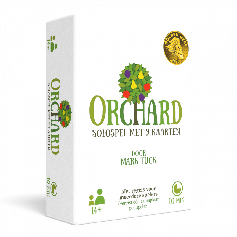 Orchard is een snel solitair "tegelleggen"-spel dat in minder dan 10 minuten speelt en dat de 2018 9-Card Nanogame Print and Play Design Contest won.