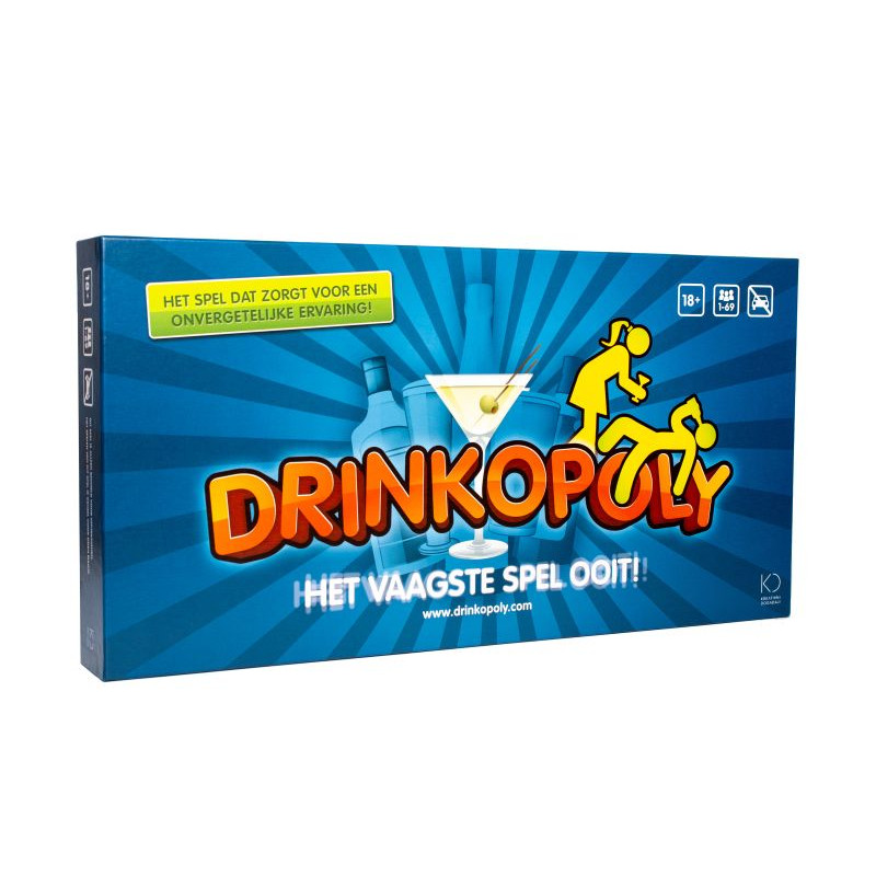 Hoe te spelen? Het bord heeft 44 velden met verschillende taken zoals het bezoeken van bars, pubs en clubs en het nemen van een slok, drinken van een glas en shots. Er zijn ook additionele Velden met speciale taken en activiteiten, zoals truth en dares, armworstelen, tongtwisters, openingszinnen en kissing contests. De Winnaar is diegene die de taken volbrengt en als eerste zijn reis eindigt. Drinkopoly heeft 50 speciale kaarten die de verschillende taken omschrijven. Als je een kaart trekt moet je de omschreven taak voldaan worden of moet je een slok nemen van je drankje. Sommige van de taken zijn grappig, sommige sexy en sommige gewoon GEK! Je mag er zeker van zijn dat welke kaart je ook trekt je het zal herinneren (of niet).