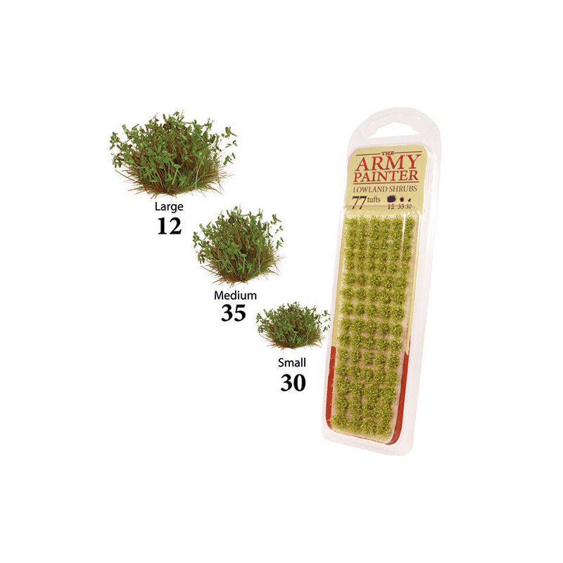 Tuft packages contain 77 tufts in 3 different sizes. Add them to your battlefield or miniature base to make them even more realistic. They are easy to use and attach using super glue and tweezers. The lowlands, haunted by vile monsters and creatures alike, are full of little streams giving life to these rich and lush shrubs.