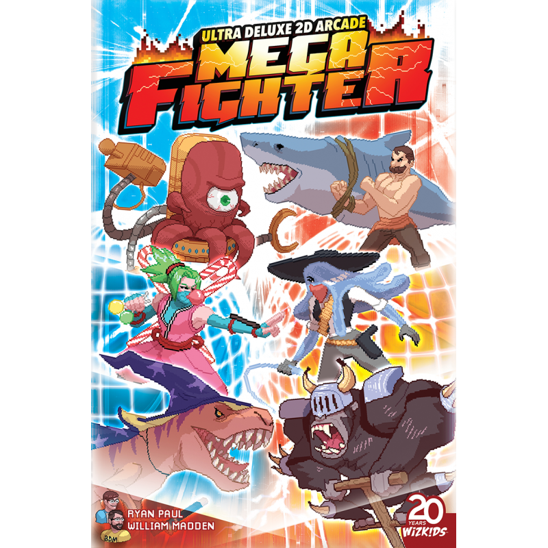 Relive classic arcade action with Ultra Deluxe 2D Arcade Mega Fighter, a two-player dueling card game based on 3-vs-3 tag-team arcade fighters such as Sharkfist, Slumberjack, and Tyranosorcerer. Draft from a group of fifteen fighters, each with their own abilities and evocative pixel art. Play "Button cards" to execute different attacks, and chain cards together to create insanely powerful combos � or mash buttons and hope for the best!