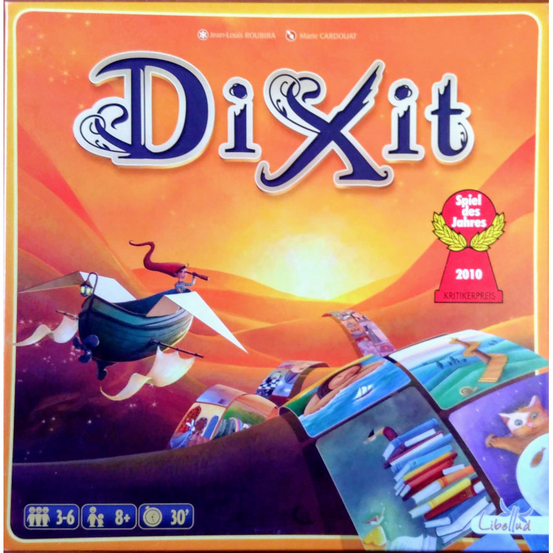 One player is the storyteller for the turn and looks at the images on the 6 cards in her hand. From one of these, she makes up a sentence and says it out loud (without showing the card to the other players).
