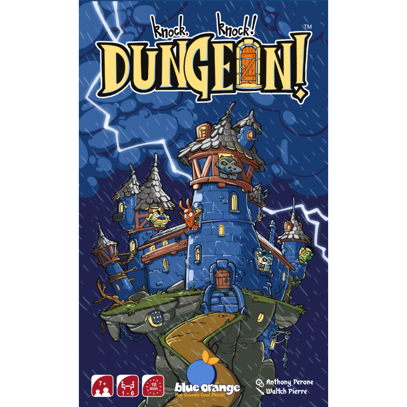 In the co-operative game Knock! Knock! Dungeon!, you and your companions must explore a dungeon with various dangers and creatures in order to find and beat the Black Knight — but you have only ten minutes before the curse of the dungeon hits you!