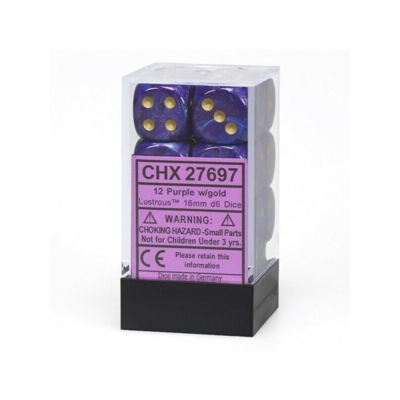Lustrous Purple/Gold D6 16mm Dice Set (12 pcs)