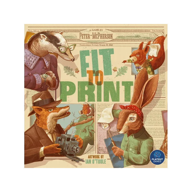 Fit To Print is a tile-laying game for the whole family. Players simultaneously collect newspaper tiles, stacking them on their desks until they think they have what they need to make the perfect front page. Then, they will yell “Layout!” and begin to lay out the page by carefully considering the placement of centerpieces, articles, photographs, and advertisements. When everything is just right, they yell “Print” to be the first off the press and gain their choice of centerpiece for the next round! This hectic spatial puzzle features over 100 unique newspaper tiles, 6 characters with their own special abilities, as well as 3 decks of Breaking News cards — so that each and every time you play you will be solving a new puzzle!