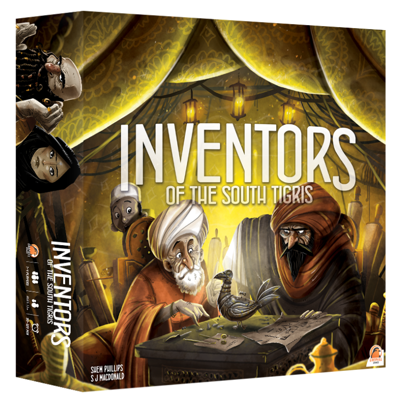 Inventors of the South Tigris is set during the height of the Abbasid Caliphate, circa 850 AD. Over the past decades, Baghdad has become home to thousands of mathematicians, astronomers, chemists, and physicians. As inspired innovators, players are eager to develop clever contraptions to impress their peers. Will your ingenious devices adorn the House of Wisdom, or are they destined for dust and decay?