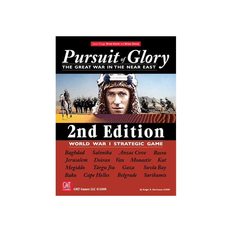 Pursuit of Glory is a stand alone sequel to Paths of Glory, a card-driven strategy game covering the first World War. Unlike the original game, which focused on the European theater of World War I, Pursuit of Glory focuses entirely on the Great War in the Middle East. Pursuit of Glory uses the same card-driven mechanics and point-to-point of the first game, but with some rules changes and modifications to better simulate the conditions of the war in the Middle East.
