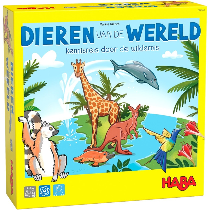 With this game you make a world trip and learn all about animals! Place your color pawn on the game board at start to begin the game. You don't roll a dice, because to determine how many steps you can take, you have to guess animals. The riddle frame contains animal cards with four wooden circles on the corners. In the middle of the card you see 4 animals and in the corners there are clues about which of these four animals is on the back. Are they diurnal or nocturnal? Does it eat meat or plants? The fewer clues you need to guess the animal, the more steps you can take on the board. Animals of the World is an exciting game and tests the general knowledge, so you can learn something from it too!