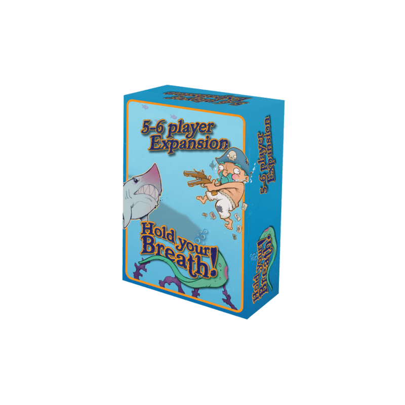 In Hold Your Breath!, the game is played in two rounds. In the first round each player may dive deeper, providing they have the "Swim" and "Air" cards to do so. Players press their luck each turn since it is the pirate who dives the deepest in round one AND resurfaces in round two who is the winner. Players can play "Panic", "Shark" and other nasty cards on the other players, slowing their progress. In the second round each player struggles to reach the surface before they run out of air and therefore decide to take a rest (aka LOSE). Most of the pirates may not make it back to the surface, but the one who makes it back alive AND dove the deepest is the winner.