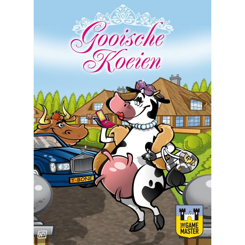 De koeien hebben een prachtige villa laten bouwen. Nu nog een rijke stier, die mooie en vooral dure design spulletjes voor ze koopt. De Gooische Koeien zijn dol op shoppen. Een mooie ring met een knoeperd van een diamant er op, een design tasje, chique schoentjes, een eigen trendy uiermobiel en een heuse bling bling zonnebril liggen voor het grijpen. Naast koopkrachtige stieren vormt de plezierstier ook een belangrijke accessoire. Opletten voor de FAKE kaart, want je wilt natuurlijk niet met namaakspul gezien worden. Echte Gooische Koeien weten precies wat ze willen! Geschikt voor 2 tot 5 spelers vanaf 13 jaar.