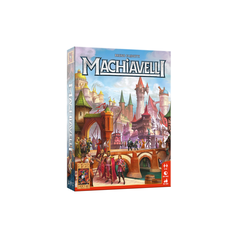 Bouw je eigen stad in dit spel vol middeleeuwse intrige. Per beurt kies je een karakter met speciale eigenschappen uit. Zo levert de koopvrouw geld op, schakelt de moordenares tegenspelers uit en beschermt de bisschop tegen aanvallen. Door goed in te schatten wat je tegenspelers kiezen, kun je ze te slim af zijn en geld stelen, kaarten afpakken of ze op andere manieren dwarsbomen. NB: Deze nieuwe editie van Machiavelli is een nieuwe versie van Machiavelli De luxe, met hetzelfde aantal karakterkaarten en extra's.