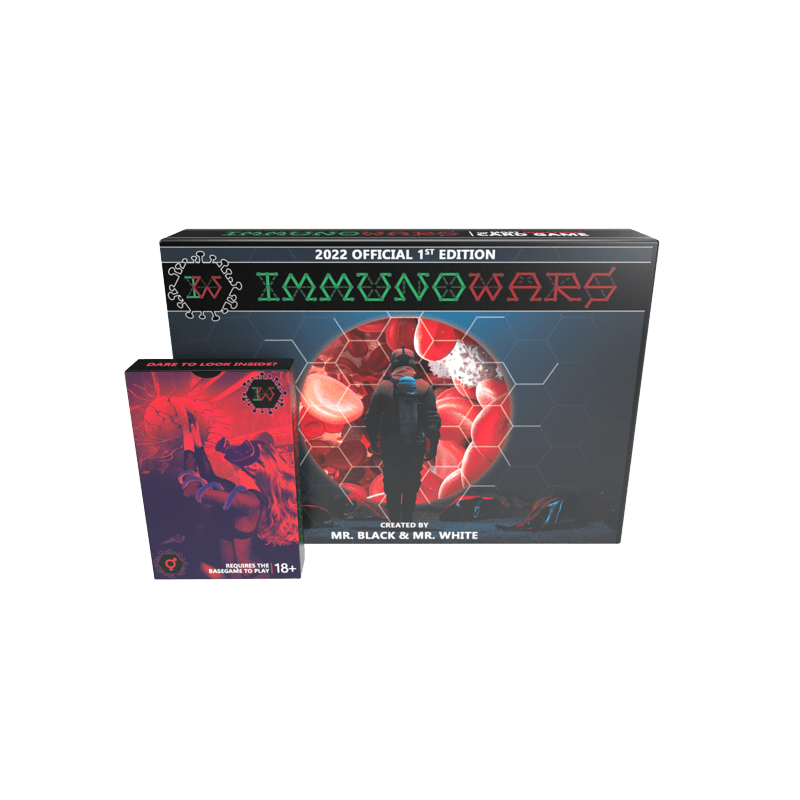 ImmunoWars is a highly strategic card game in which you wage biowarfare on your friends & foes. Infect each other with viruses & bacteria. Protect yourself with kickass gear, medicine, and a strong immune system. Manipulate your enemies through various actions and events, such as by stealing their organs, sneezing on them, or forcing them in quarantine.