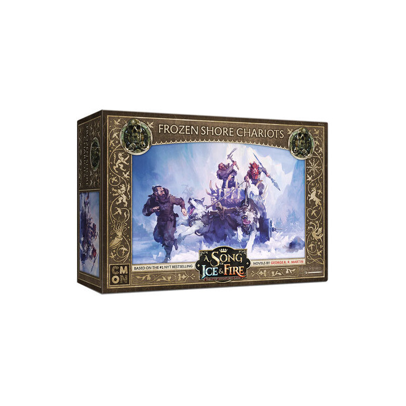 The Frozen Shore Chariot Box Set gives Free Folk Players in the A Song of Ice and Fire: Tabletop Miniatures Game a new warmachine for their army. Like cavalry models, this unit can make a free Maneuver Action at the start of its activation, letting it get into position for one of its deadly charges. They hit like an avalanche, getting extra power and taking out concentrated enemy units with ease.