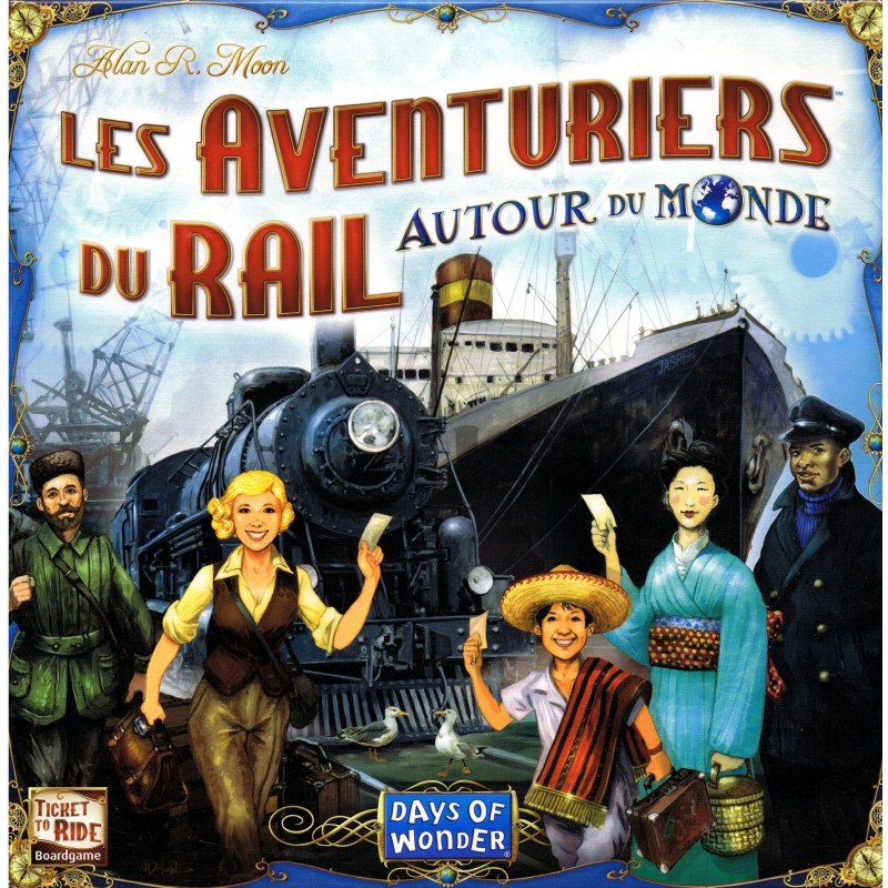 Les Aventuriers du Rail Autour du monde est une nouvelle version du célèbre jeu d’aventures ferroviaires. Le jeu reprend la mécanique de base du jeu original mais apporte également plein de nouveautés, qui rendent cet opus singulier. L'ajout des voies maritimes apporte de la variété et de la profondeur dans les choix stratégiques des joueurs. Aux célèbres petits wagons colorés, s'ajoutent désormais des navires, qui trouveront facilement leur place dans les plans des voyageurs. Pour espérer gagner, les joueurs devront habilement concentrer leur stratégie autour d'un compromis entre les voies ferroviaires et maritimes. Le jeu offre de nouvelles possibilités qu'il faudra impérativement dompter pour triompher.