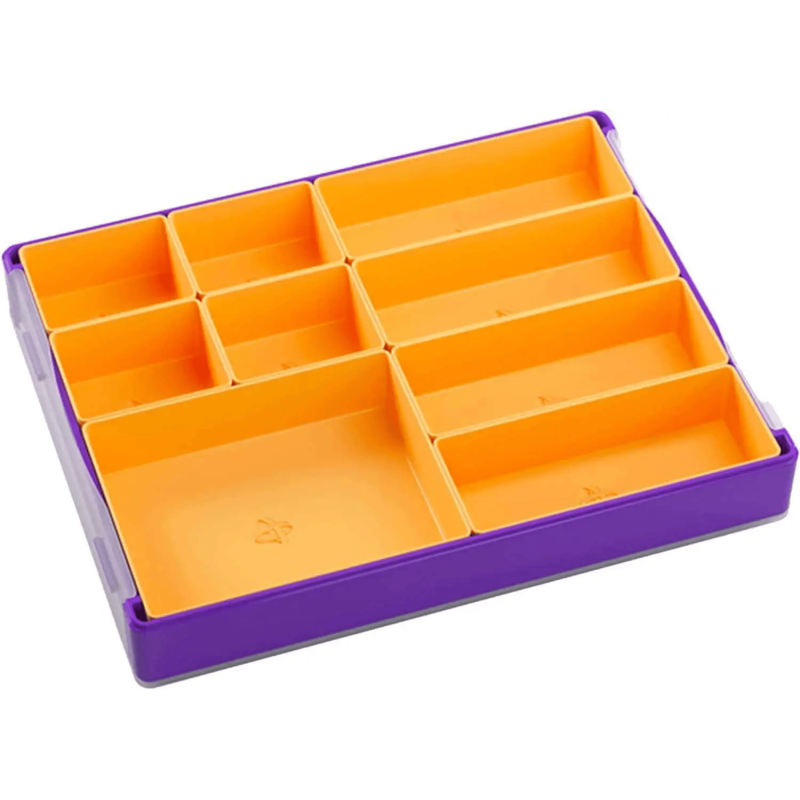 Save valuable space on your board game table with this revolutionary and convertible Token Silo. Snap the lid onto the bottom of the box for easy access to all your tokens. This unique, convertible box stores and organizes a variety of tokens, cards, dials, dice, and many other items. The Token Silo comes with 9 trays in 3 different sizes, which are fully removable to keep your accessories handy during the game. The large trays hold up to 40 single-sleeved cards or 75 unsleeved cards. The bottom section can also be used as a dice tray. The trays can be stacked several times and are made of durable, sturdy material. The Token Silo is from the Gamegenic brand and is available in several vibrant colors.