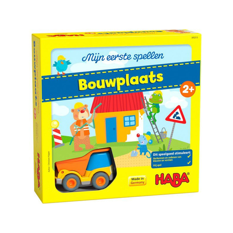 Bruno de Beer heeft de taak van hoofdopzichter op de bouwplaats. De beer houdt alle werkzaamheden goed in de gaten. Maar het is zo druk, dat Bruno goed wat hulp kan gebruiken! Zou jij samen met de beer een huis willen bouwen? De bedoeling is om de juiste kegelplaatjes bij elkaar te zoeken en deze met de kiepwagen naar de bouwplaats te brengen. Zo ontstaan er stapje voor stapje een funderingsplaat, het metselwerk, het dak en de tuin. Het kind leert spelenderwijs wat het betekent om een bouwvakker te zijn. Tijdens het spelen worden het gevoel voor ordenen, de logica en het geheugen gestimuleerd. Is het huis af? Supergoed gedaan! Een eerste ordeningsspel en memory in unieke setting voor kleine bouwvakkers vanaf 2 jaar. Het eerste spel Bouwplaats is alleen te spelen (1 speler) tot en met 4 spelers aan toe. Het spel bevat een kiepwagen in de reeks van Kullerbü (Rollebollen). Het spel is tevens te combineren met de baandelen van Kullerbü Speelbanen en Knikkerbanen.