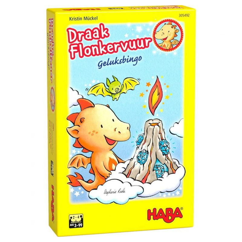 Samen met draak Flonkervuur en zijn vrienden gaan de spelers op ontdekkingstocht om bij het omdraaien van de bingokaartjes vuurspuwende vulkanen, geheimzinnige schatkaarten en nog veel meer te ontdekken. Voor elk plaatje dat ze op hun grote bingokaart vinden, krijgen ze een dondersteen. Wie als eerste er vier op een rij heeft, roept ‘Drakenbingo!’ en wint. Inhoud: 4 bingokaarten, 24 kaartjes, 45 donderstenen, 1 handleiding.