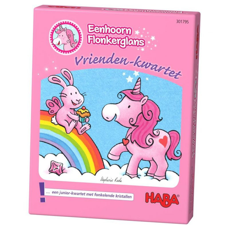 Eenhoorn Flonkerglans en haar vriendinnen spelen vandaag kwartet! Wie mag meespelen? Met wat concentratie en de juiste portie geluk kun je vier dezelfde kaarten verzamelen en zo een kwartet vormen. Als beloning krijg je dan een wolkenkristal. Wie slaagt erin om de meeste wolkenkristallen te verzamelen?