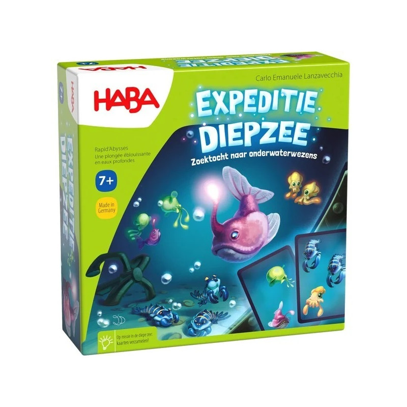 Ben jij klaar om op onderzoek te gaan in de diepte van de zee? Met dit spelletje ga je op zoek naar onderzeewezens, maar wel in specifieke aantallen. Aan het begin van elke ronde rolt de duikleider de 4 dobbelstenen. Je moet dan van elke kleur het gerolde aantal zeedieren zoeken. Iedereen speelt tegelijkertijd, door met 1 hand in de stapel kaarten te zoeken naar het correcte aantal dieren, die telkens met meerdere, verschillende kleuren op dezelfde kaartjes staan. Je moet temidden van de chaos dus goed opletten en goed blijven zoeken naar wat je nog nodig hebt. Heb je aan het eind van de ronde teveel of te weinig zeedieren van een specifieke kleur gevonden, dan krijg je minpunten. De speler die na vijf rondes de minste minpunten heeft, is de winnaar!