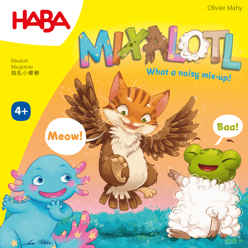 The dog goes “moo,” the cow goes “baa”? The mischievous Mixalotl has mixed up all the animal heads and bodies! Quickly restore order to the chaos by turning over the animal cards and making the right animal sounds – or grabbing the Mixalotl.