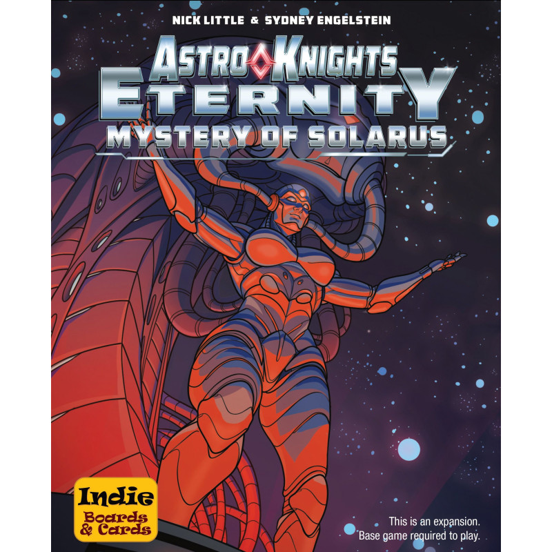 Astro Knights: Eternity – Mystery of Solarus is an exciting expansion for the cooperative deck-building game Astro Knights: Eternity, published by Indie Boards & Cards. In this expansion, players continue their galactic defense mission, exploring the dangerous ruins of the planet Eos. Two new Astro Knights—Naoko and Sunshine—join the team to face a challenging new nemesis, the Shade Sculptor. The expansion also introduces a new Homeworld, Eos, along with powerful tech, weapons, and fuel cards. The thrilling addition of these new elements enhances the gameplay, bringing fresh strategies and added depth to your Astro Knights experience.
