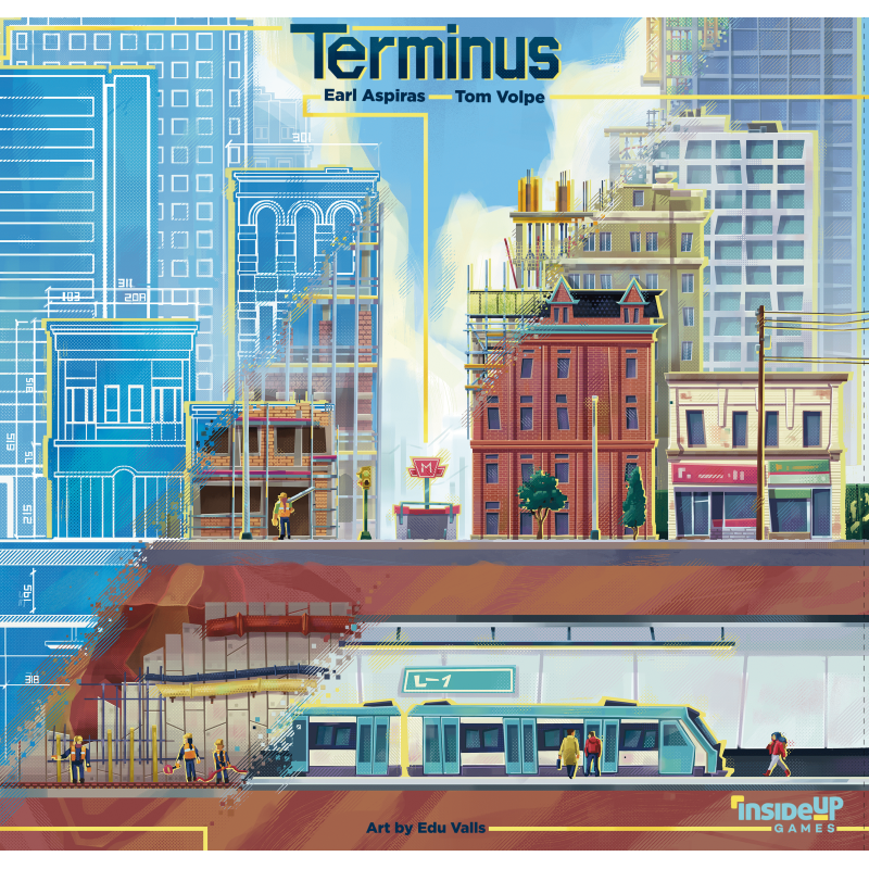 Terminus is a resource management and subway development game for 1 - 5 players, featuring a rondel and variable marketplace.