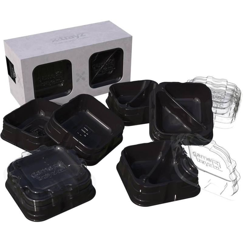 Keep any game beautifully organized inside the box, and on your table, with X-Trayz. Featuring two unique layouts and 3 color options, X-Trayz are engineered to be a flexible solution for your entire board game collection. Each X-Trayz measures 3.5″ × 3.5″ × 1.3″ (1″ without lid). Each package contains 6 X-Trayz with 3 single and 3 double layouts.
