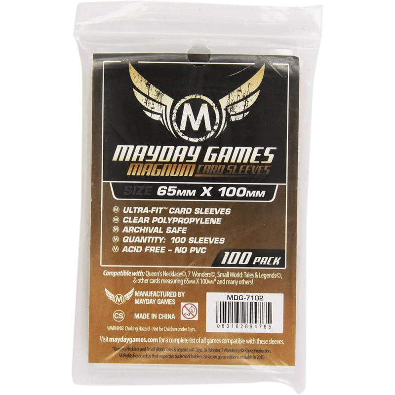 These are compatible with Queen’s Necklace, 7 Wonders, Small World: Tales & Legends & other cards measuring 65 X 100 MM. The cards will fit snuggly in these sleeves.
