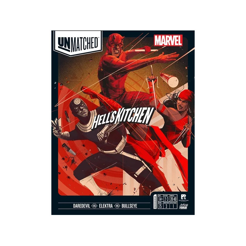 When it comes to Unmatched … Make Mine Marvel! Unmatched is the critically acclaimed, best-selling game of tactical combat between unlikely opponents. This time, it’s a classic, all-out brawl in Hell’s Kitchen. Daredevil is at his strongest when he pushes himself to the brink of exhaustion. Bullseye unleashes deadly strikes from anywhere on the board. Strike down Elektra, and she returns more powerful than ever. They’ll settle scores on the Hell’s Kitchen battle map, featuring item tokens that provide fighters with potent effects.