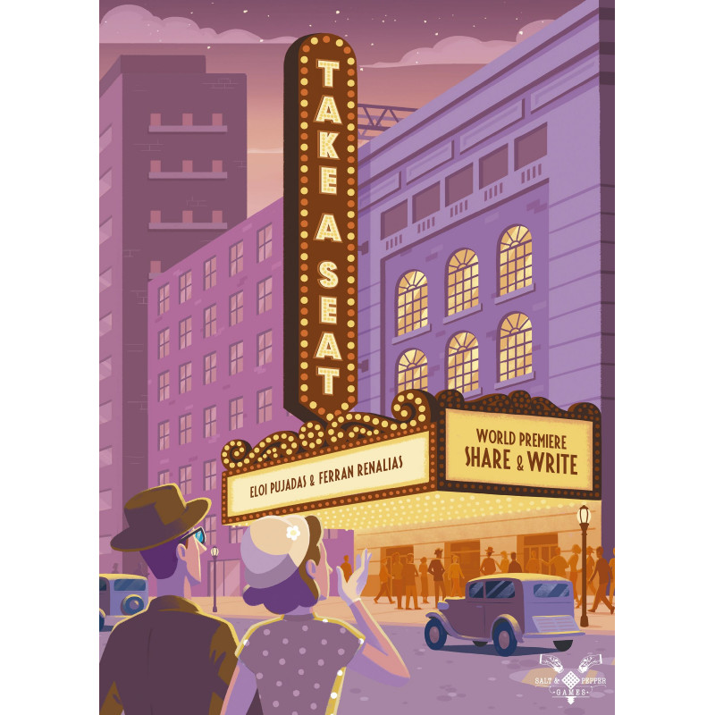 Take a Seat introduces an innovative mechanic named Share & Write where the randomness is created by player interaction (instead of a dice or a card). In each turn players will get a reservation panel and they will have to decide whether to use the usher’s ability or get direct points. Then they will need to mark a reservation in the board of their right or left (depending the turn) by scratching on any of the 4 tickets of the reservation panel. Finally they will have to assign seats on the theater by marking the outline and the circles that correspond to the selected pieces in the previous step.