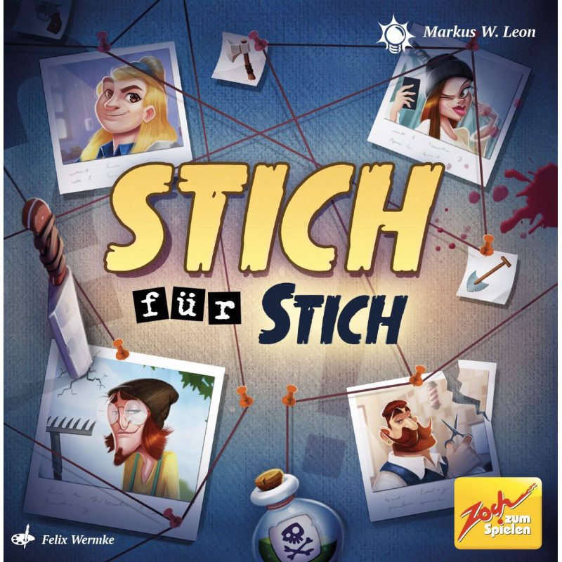 Stich für Stich is a highly suspicious crime card game for all sleuths, confidants, and knife guys!